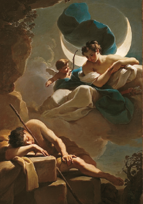 Убальдо Гандольфи. Селена и Эндимион. Ок. 1770. США, Музей искусств округа Лос-Анджелес. Богиня Луны, очарованная Эндимионом, погружает его в вечный сон, чтобы сохранить красоту юноши