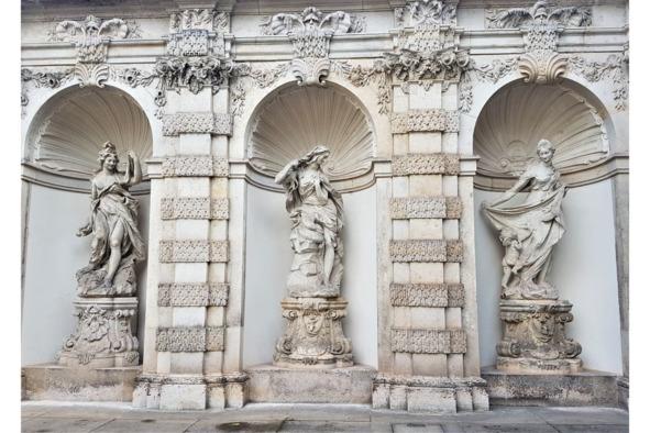 В Цвингер мы пришли уже под конец дня, когда дождь почти кончился. День был бешеный. Сначала очень жаркий, плюс тридцать три. Потом ветер грозовые тучи пригнал, и внезапно плюс десять стало. К вечеру слегка потеплело, мы обрадовались и побежали в город.