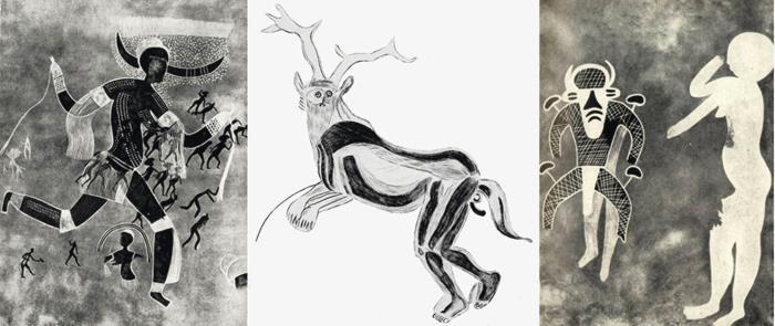 Доисторические изображения людей в рогатых шапках из Тассили (Алжир) и Труа-Фрер (Франция)