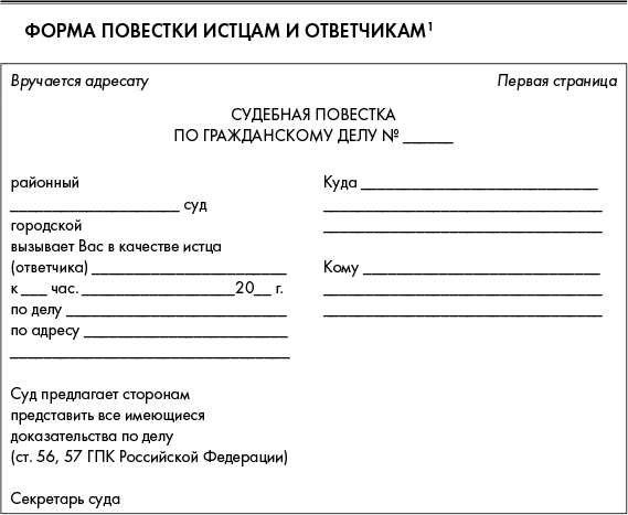 Форма повестки истцам и ответчикам2