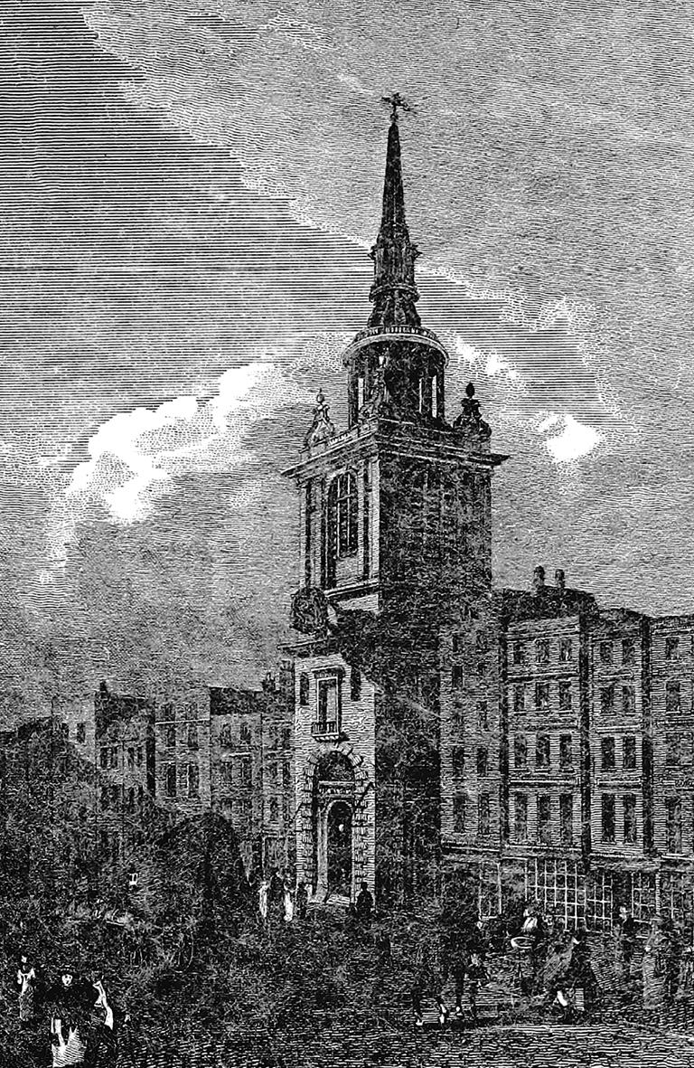 «Боу-Черч» переводится с английского как «Церковь Арки». Такое название храм получил по той причине, что он была построен над древней подземной часовней с арочным сводом.