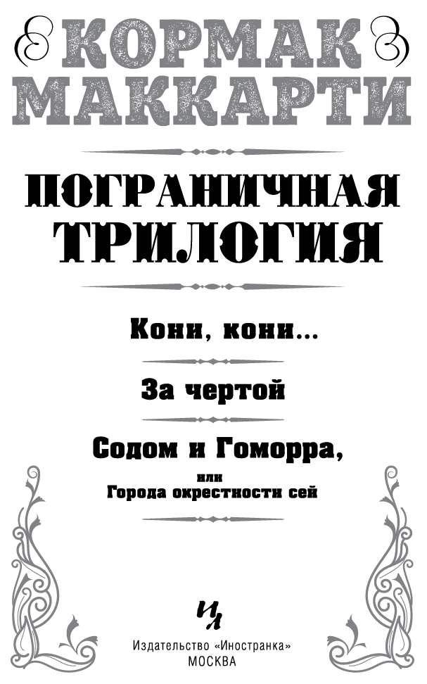 Пограничная трилогия : романы / Кормак Маккарти ; пер. с англ. С. Белова, В. Бошняка. — М. : Иностранка, Азбука-Аттикус, 2021. — (Большой роман).