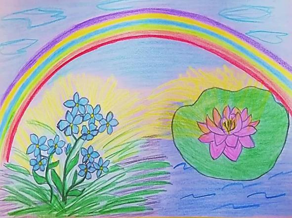 После очередного летнего дождя, под возникшей Радугой, встретился Незабудке прекрасный цветок Лотоса, который светился теплом и добром так, что вокруг него оказывалось много счастливых красивых цветов. Соединились Огни Любви Незабудки и Лотоса, новую двойную, объединённую силу обрели.