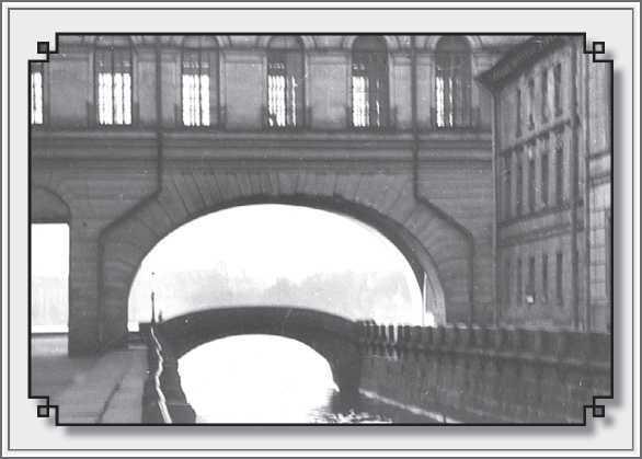 Перед вами на снимке уголок, уж конечно хорошо знакомый. Зимняя канавка уходит к Неве, и арка там, в ее конце, одним своим крылом упирается в здание Эрмитажного театра.