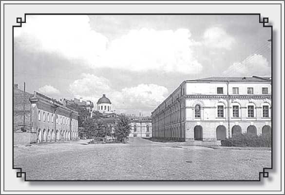 Потом под боком у него, по обеим сторонам просеки-першпективы, выросли здания двух «пушечных дворов». (Даром что ли первоначальное название ближайшей к ним Сергиевской улицы было, по словам автора исторического очерка об Арсенале В. Родзевича, – Пушкарская.)