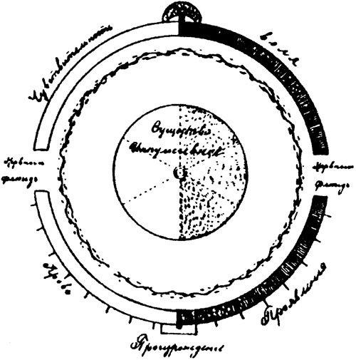 Посвященные же, напротив того, учат, что светила движутся под действием заключенных в них сил и что действие планетного ядра ничем не отличается от действия ядра живой клеточки.