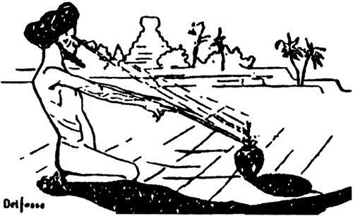 Один из обычных их опытов состоит в следующем: на расстоянии двух аршин от факира, сидящего на полу, ставят горшок с землей, куда сажают зерно какого-либо растения. Он устремляет на него свой взгляд, мало-помалу бледнеет и застывает в своей позе, с руками, простертыми к зерну, погруженный, по-видимому, в каталептическое состояние, причем тело его слегка охлаждается.