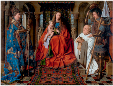 106 Ср. некорректное, на мой взгляд, объяснение того, почему здесь донатора, вопреки обычаю, не сопровождает святой патрон: «Видимо, канцлер считал, что не нуждается в ходатае перед Богоматерью» (Егорова К. С. Ян ван Эйк. М., 1965. С. 81).