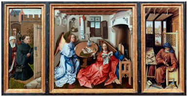 Знатокам живописи «фламандских примитивов» давно не давали покоя три замечательные доски из Штеделевского художественного института во Франкфурте-на-Майне: гризайль «Троица» со «Святой Вероникой» на обороте, стоящая «Мария с Младенцем» и фрагмент «Распятия» со злым разбойником на кресте. Совершенно очевидно, что их автором был один и тот же художник. Но кто? Ошибочно предположив, что эти работы происходят из аббатства Флемаль близ Льежа, автора назвали Флемальским мастером. На основании стилистического сходства подобрали еще несколько произведений, и, когда в архиве Турне вдруг всплыло имя Робера Кампена, многие ученые пришли к мнению, что именно ему следует приписать все эти картины, ибо уже давно было замечено, что среди работ Рогира ван дер Вейдена есть вещи, по манере исполнения довольно близкие к произведениям Флемальского мастера.