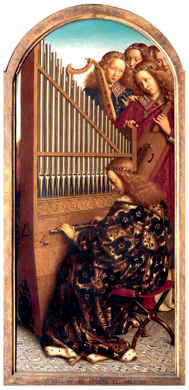 Музицирующие ангелы. Створка «Гентского алтаря» Яна ван Эйка. 1432