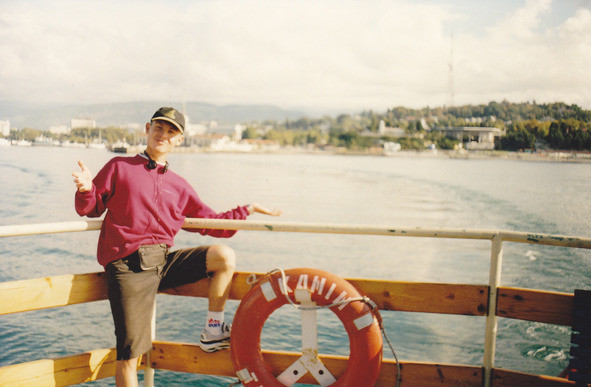 С утра на поезде приехали в Сочи, и сразу же двинулись в сторону моря. А там народ купается, ну и мы не удержались от соблазна: температура воды примерно 20—22 градуса, а вот на воздухе немного прохладно. Пляжи грязные и неуютные. Но само это ВСЁ…, ну, то есть Сочи и Чёрное море — это меня сильно впечатлило! Чистый пляж только около гостиницы «Жемчужина», летом вход там платный и стоит 50 или 100 руб., а сейчас свободный, но мы туда не пошли. Нам хотелось поскорее залезть в море — ведь его в Пензе нет, да и погодка дома уже далеко не летняя — осень давно уж на дворе. Для меня этот день вообще был очень значимым — ведь я ВПЕРВЫЕ оказался на нашем юге — на Черноморском побережье! Хотя главной нашей целью было попасть на Средиземное море.
