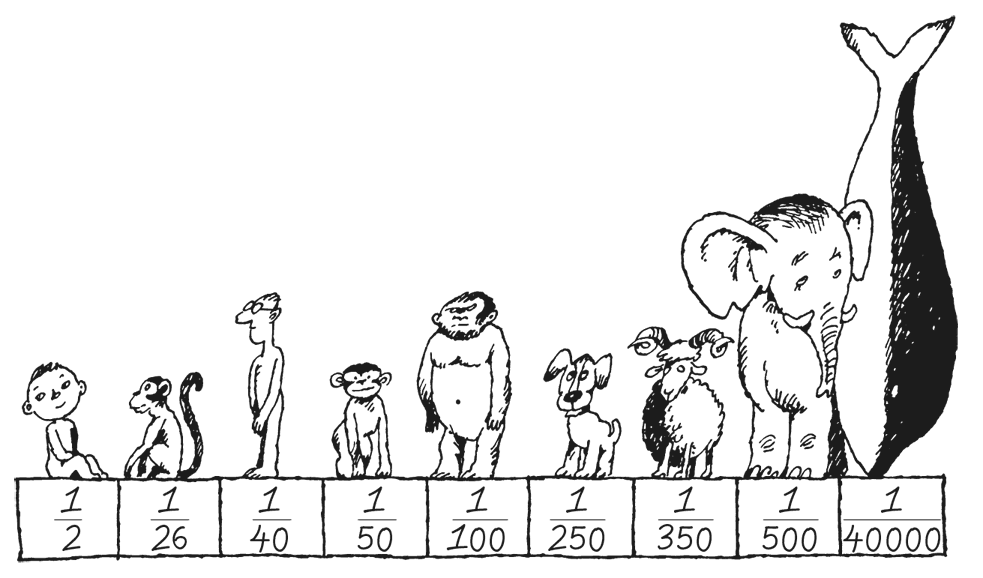 Ученые, которые изучают эволюцию – развитие человеческого рода, считают, что человек выделился среди других живых существ около двух миллионов лет тому назад. То есть между современным человеком и его далеким первым предком – восемьдесят пять тысяч прошедших поколений. И почти полтора миллиона лет человек пользовался каменными и костяными орудиями, занимался охотой и собирательством, жил в пещерах. Но пятьдесят тысяч лет назад возникли языки: человек научился говорить. И с этого момента начался ускоренный прогресс человечества: возникли города, были созданы сложные механизмы и великие произведения искусства, развились науки. А за последние триста лет, которые составляют всего около 0,0002 процента времени существования человеческого рода, люди в своем научном и художественном творчестве превзошли все то, что было достигнуто за весь предшествующий период существования человека.