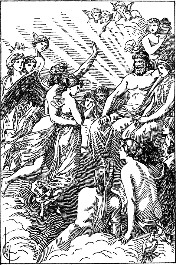 Отправилась Психея на поиски Эрота. Пытаясь погубить Психею, давала ей Афродита невыполнимые поручения, но Психея выдержала все испытания, даже в Аид спустилась. А когда вернулась из царства мертвых, встретилась с выздоровевшим Эротом. Поднялся Эрот на Олимп и рассказал обо всем Зевсу. И Зевс даровал Психее бессмертие и велел Эроту никогда не покидать любимую.