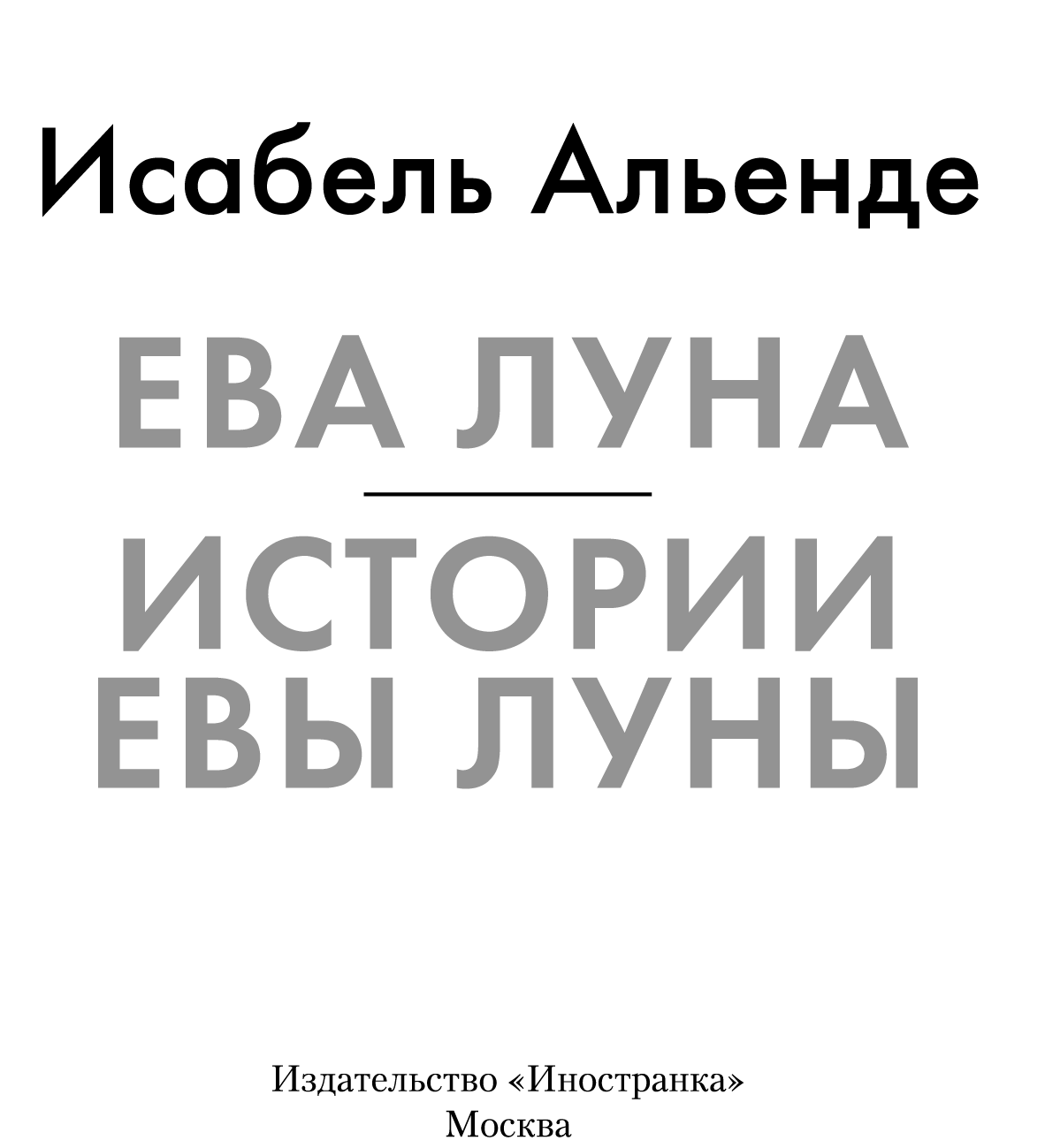 Ева Луна. Истории Евы Луны : роман, рассказы / Исабель Альенде ; пер. с исп. В. Правосудова, А. Денисовой. — М. : Иностранка, Азбука-Аттикус, 2023. — (Большой роман).