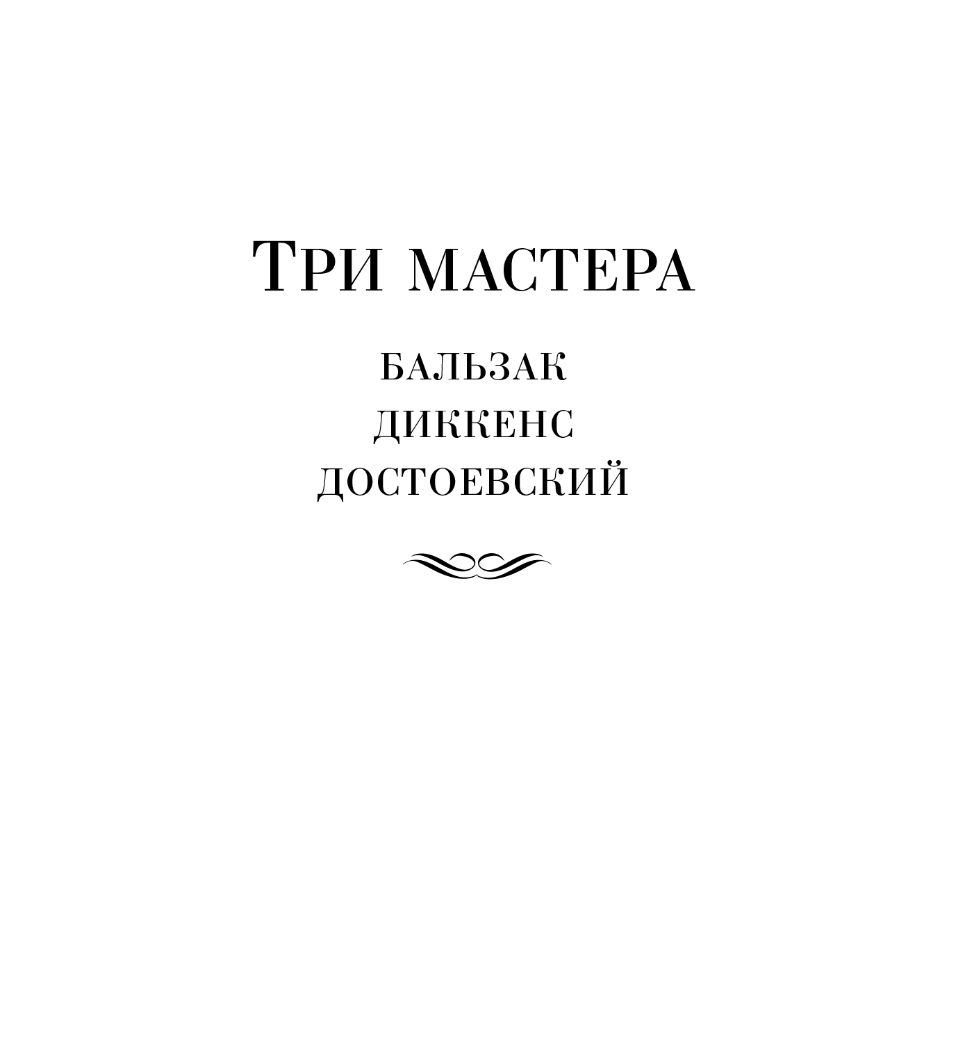 Эти три очерка — о Бальзаке, Диккенсе и Достоевском — появились на протяжении десяти лет, однако неслучайно соединены они в одной книге. Они проникнуты единым намерением в лице трех великих и — в моем понимании этого слова — единственных писателей-романистов девятнадцатого века показать типы, которые благодаря резкому своему несходству как бы дополняют друг друга, и внести, может быть, ясность в понятие об эпическом изобразителе мира, о романисте.