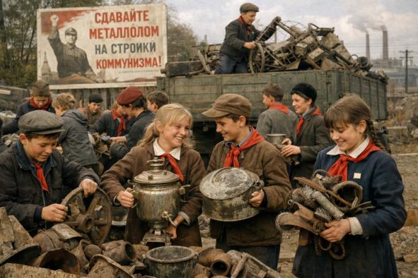 Зато металлолом мне нравилось собирать. Потому что нас не заставляли тащить из дома кастрюли и вёдра. Для этого отводился специальный день. Я уж не помню, что за день был: то ли выходной, то ли нас освобождали от занятий.