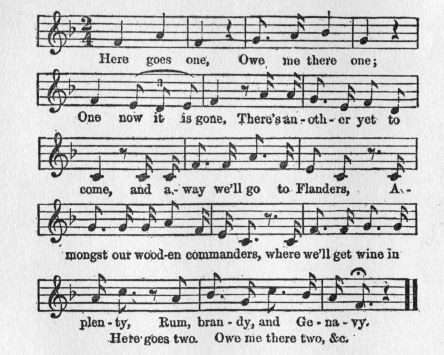 Whereon (laugh not, reader, for it was the fashion of those musical, as well as valiant days) up rose that noble old favorite of good Queen Bess, from cornet and sackbut, fife and drum; while Parson Jack, who had taken his stand with the musicians on the poop, worked away lustily at his violin.