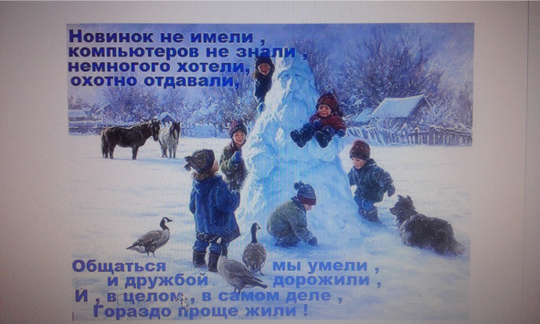 Дедушки вспоминали войны, которая вела Россия, чтобы быть свободной и справедливой В их рассказах — чувство гордости за самих себя, за весь русский народ, за его мужество и доброту. А бабушки тихо и нежно говорили нам, внукам, какая она большая — эта страна с названием Россия, что она самая главная в мире. И все это завоевали для нас наши предки, самые смелые и самые красивые. А затем рассказывали дивные истории и сказки, в которых русские всегда побеждали своих врагов, а русских никто и никогда не смог одолеть.