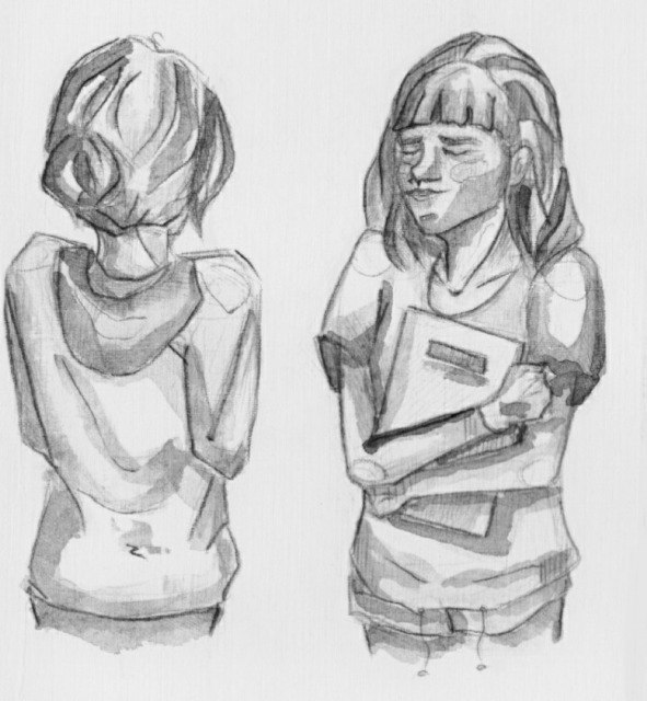 беспомощно и отчаянно опираюсь головой о стол, кричу часам «прекратите тикать, сволочи вы беспощадные!» и нервно смеюсь куда-то в ледяную темноту чернильной ноябрьской ночи. в квартире включена лишь одна лампа — лампа над моим письменно-чертежным столом. атмосфера, прямо сказать, действительно очень творческая — и компания суккулентов с кактусами тебе, и куча стареньких затертых фолиантов запаха мускатного ореха и чёрного перца, и корыто крепкого чая с тазиком чёрного кофе по обе стороны рук, и палитра акварели «Ленинград» с гнутыми от сырости подпаленными листами бумаги, и золотистые пылинки, танцующие в темноте под светом искусственных огней. в общем, твори себе, вытворяй — не хочу.