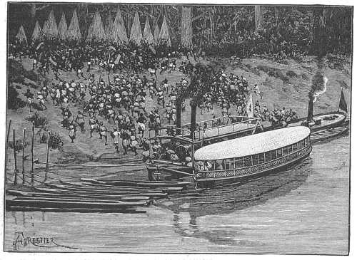 An African road—Our mode of travelling through the forests—Farewell to Jameson and the Major—160 days in the forest—The Rapids of Yambuya—Attacked by natives of Yankonde—Rest at the village of Bahunga—Description of our march—The poisoned skewers—Capture of six Babali—Dr. Parke and the bees—A tempest in the forest—Mr. Jephson puts the steel boat together—The village of Bukanda—Refuse heaps of the villages—The Aruwimi river scenery—Villages of the Bakuti and the Bakoka—The Rapids of Gwengweré—The boy Bakula-Our "chop and coffee"—The islands near Bandangi—The Baburu dwarfs—The unknown course of the river—The Somalis—Bartering at Mariri and Mupé—The Aruwimi at Mupé—The Babé manners, customs, and dress—Jephson's two adventures—Wasp Rapids—The chief of the Bwamburi—Our camp at My-yui—Canoe accident—An abandoned village—Arrival at Panga Falls—Description of the Falls