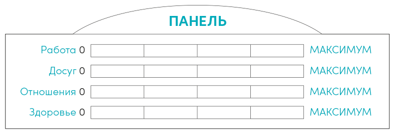 Используя эту панель наблюдения, оцените полноту областей своей деятельности по шкале от нуля до максимума. Сравните. Досугу отводится всего четверть, а работе достается все и даже больше? Как обстоят дела с отношениями? С душевным спокойствием и гармонией? Вам интересно, что мы подразумеваем под словом «максимум»? Это решать вам и только вам! Кому, как не вам, эксперту по самому себе, по силам оценить полноту различных сфер собственной деятельности?