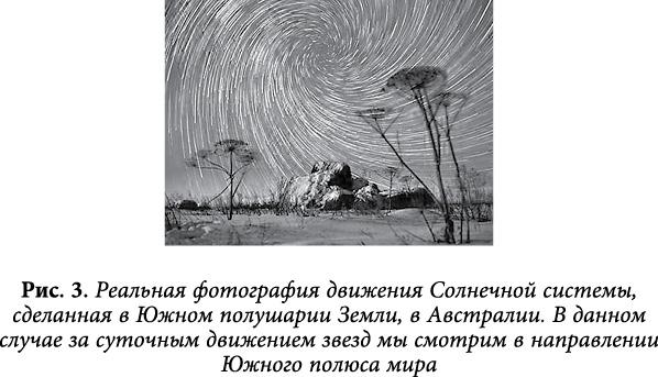 Увидеть полюс мира несложно. Для этого нужно закрепить неподвижно камеру на штативе и поставить длительную выдержку. Снимок с пятнадцатиминутной экспозицией позволит увидеть, что звездные пути представляют собой дуги окружностей, которые тем больше, чем дальше звезда находится от небесного полюса (рис. 3).