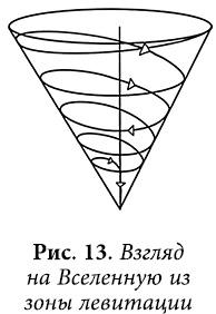 Находясь в этой зоне левитации и глядя из нее в дырочку расширяющейся воронки, мы видим расширяющуюся Вселенную (рис. 13).