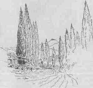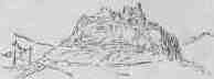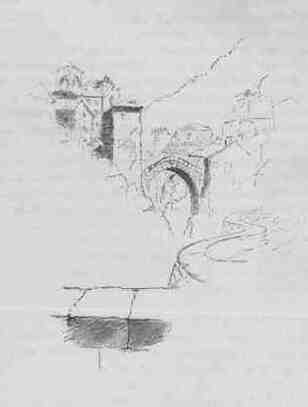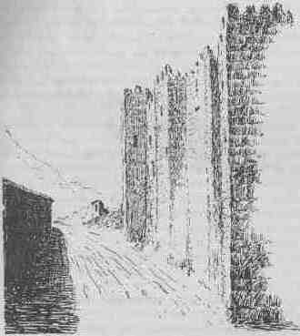 I had not gone far, not a quarter of a mile, along my road leaving the town, when I thought I would stop and rest a little and make sure that I had started propitiously and that I was really on my way to Rome; so I halted by a wall and looked back at the city and the forts, and drew what I saw in my book. It was a sight that had taken a firm hold of my mind in boyhood, and that will remain in it as long as it can make pictures for itself out of the past. I think this must be true of all conscripts with regard to the garrison in which they have served, for the mind is so fresh at twenty-one and the life so new to every recruit as he joins it, he is so cut off from books and all the worries of life, that the surroundings of the place bite into him and take root, as one's school does or one's first home. And I had been especially fortunate since I had been with the gunners (notoriously the best kind of men) and not in a big place but in a little town, very old and silent, with more soldiers in its surrounding circle than there were men, women, and children within its useless ramparts. It is known to be very beautiful, and though I had not heard of this reputation, I saw it to be so at once when I was first marched in, on a November dawn, up to the height of the artillery barracks. I remembered seeing then the great hills surrounding it on every side, hiding their menace and protection of guns, and in the south and east the silent valley where the high forests dominate the Moselle, and the town below the road standing in an island or ring of tall trees. All this, I say, I had permanently remembered, and I had determined, whenever I could go on pilgrimage to Rome, to make this place my starting-point, and as I stopped here and looked back, a little way outside the gates, I took in again the scene that recalled so much laughter and heavy work and servitude and pride of arms.