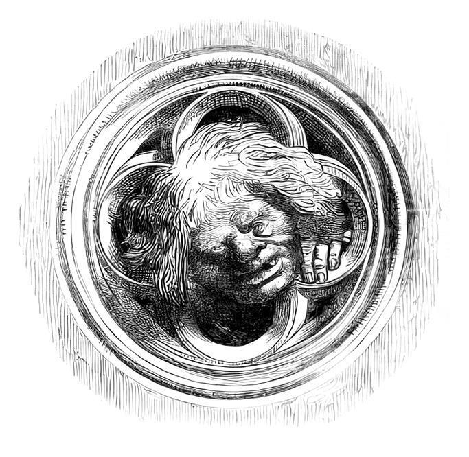 Представьте себе вереницу лиц, последовательно изображающих все геометрические фигуры – от треугольника до трапеции, от конуса до многогранника; выражение всех человеческих чувств, начиная от гнева и кончая похотливостью; все возрасты – от морщин новорожденного до морщин умирающей старухи; все фантастические образы, придуманные религией, от Фавна до Вельзевула; все профили животных – от пасти до клюва, от рыла до мордочки. Вообразите, что все каменные личины Нового моста, эти застывшие под рукой Жермена Пилона кошмары, ожили и пришли одни за другими взглянуть на вас горящими глазами или что все маски венецианского карнавала мелькают перед вами, – словом, вообразите непрерывный калейдоскоп человеческих лиц.