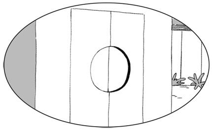 Девочка уставилась на строение, сверкающее в ярких лучах летнего солнца. Оно больше походило на контейнер в форме куба. Зато все стены оказались разного цвета. Передняя — розовая, боковые — зеленая и голубая, задняя — фиолетовая, а верх — черный. Этот странный маленький домик мог вместить в себя максимум одну комнату. Откуда же он взялся? А вон то серебристое — это что, дверь?
