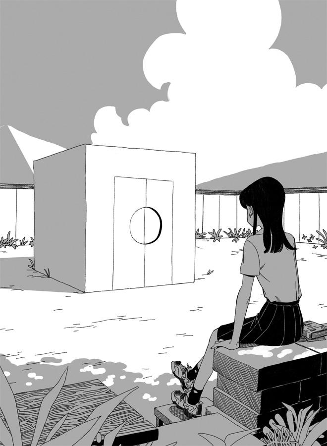 — Да что это… — пробормотала себе под нос девочка, переводя взгляд с бетона на здание и обратно. Но сколько бы она ни смотрела, ответа не было. В это время в кармане завибрировал телефон. До конца обеденного перерыва в школе оставалось десять минут. Мичжи обычно ела на обед булочку, а потом сразу шла на свой пустырь, чтобы почитать. И всегда ставила будильник. Если она читала в классе, другие ребята начинали ее задирать, поэтому Мичжи предпочитала приходить сюда. Но сегодня из-за появления странного здания ей не удалось даже открыть книгу.