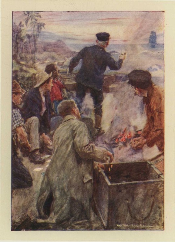 The tramp of horse-hoofs, the clank of the capstan, the door ajar—a thousand sights and sounds were but symbolisms to him of some mysterious by-way of adventure to be followed up, quick with latent possibilities of romance; and from one word, one name, he could evolve a whole intricate plot. With the simplest of sentences, he could electrify the startled reader, as when in The Wrecker, where the desperate castaways sit gambling on the desert island, and one suddenly cries aloud, "Sail ho!"