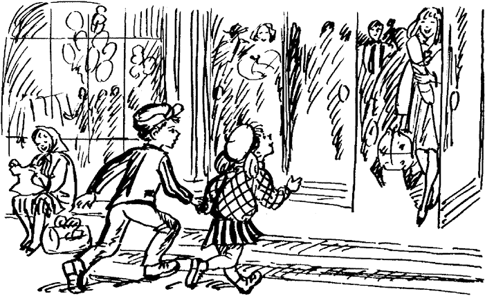 Мы взялись с Аленкой за руки и побежали как сумасшедшие в большой магазин. Там была целая толпа народу и в самой середине стояли сделанные из чего-то блестящего мужчина и женщина, огромные, под потолок, и, хотя они были ненастоящие, они хлопали глазами и шевелили нижними губами, как будто говорят. Мужчина кричал: