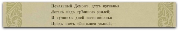Напрягаю свой мозг и шепотом леденящего ветра в голове проносятся первые строчки поэмы «Печальный Демон, дух изгнанья, Летал над грешною землей…», оставляя в послевкусии все тот же запах утра после дождя… Легкие наполняются свежестью Z. Голова кружится. Медленно опускаюсь в кресло. На секунду чудится, словно на занавесе мглы, театрально степенно спускающемся на землю, мелькнуло Его лицо…