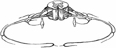 От нервных клеток спинного мозга, т. е. от правой и левой половины каждого сегмента, парами отходят основные отростки-аксоны, из которых образуются левый и правый нервы сегмента. Поперечный отрезок спинного мозга и связанные с ним правые и левые спинномозговые нервы, через которые головной мозг контролирует определенный участок тела, называется нервным сегментом(рис. 7).