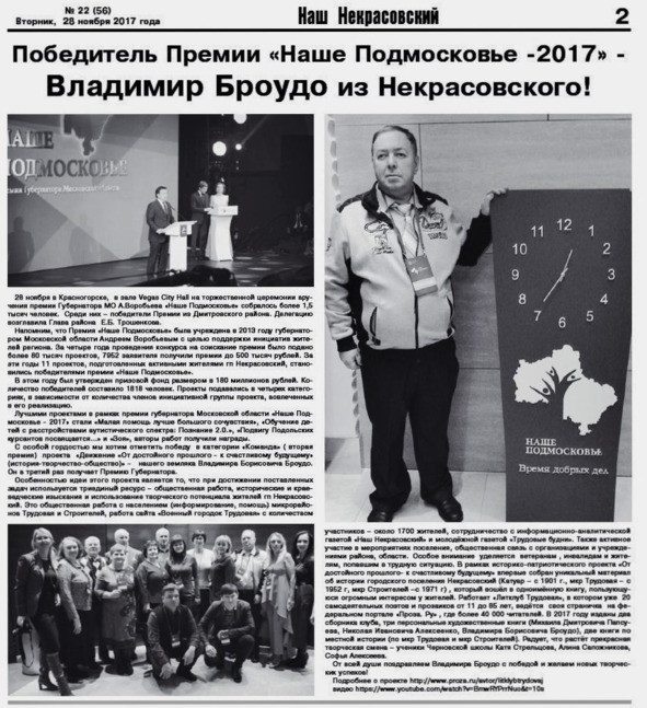 - Статья в газете «Наш Некрасовский» №16—2016 г