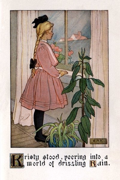 “I think it’s just horrid!” said Kristy, standing before the window, peering out into a world of drizzling rain. “Every single thing is ready and every girl promised to come, and now it has to go and rain; ’n’ I believe it’ll rain a week, anyway!” she added as a stronger gust dashed the drops against the glass.