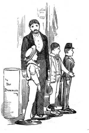 When Bessie saw the bazaar she was as full of admiration of it as even Madge and Letty could desire, especially of the big tailor's. There was a brilliant show of figures, from the little wax boy in imaginary English sailor costume, to a moustached gentleman elaborately got up in evening suit, white tie and all.