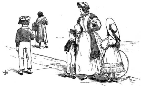 "Look, Addie," she called back, "there's a set of Pan-pipes; you wanted to know what they were like. They're a very doleful set, certainly; did you ever see such a miserable object? He must be silly in his head, poor thing, don't you think, aunty? May I give him a penny—or Jack will."