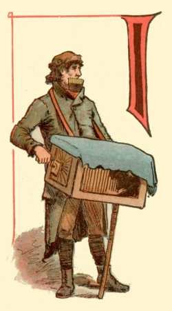 "Know him," repeated my new friend, "I should think we did. Bless you he comes every Saturday to us for his dinner, as reg'lar as the clock strikes, and has done for many a day. Twelve year, or so, it must be, since he was runned over by a bus, and his poor head smashed in, and his organ busted, and his pipes broke to bits. He was took to the 'orspital and patched up, but bein' a furriner was against him, no doubt," and the old woman shook her head sagely. "He couldn't talk proper before, and since, he can say nothink as any one can make head or tail of. But as long as he's free to go about with his rattlin' old box as was onst a' orgin, he's quite happy. They give 'im new pipes at the 'orspital, but he can't play them right. And a bit ago some well-intending ladies had 'im took off to a 'sylum, sayin' as he wasn't fit to be about. But he nearly died of the bein' shut up, he did. So now he's about again, he has a little room in a street near here, that is paid for, and he gets a many pennies, does Davey, and the neighbours sees to him, and he's quite content, and he does no harm, and all the town knows silly Davey."