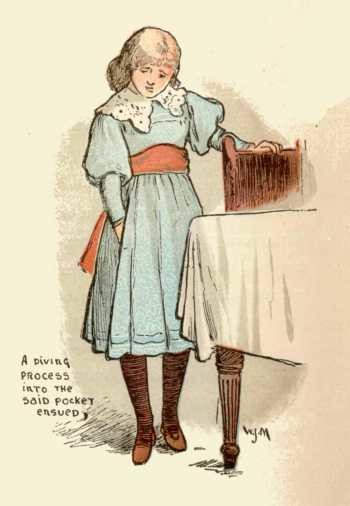 "Oh dear, I forgot I was feeling for the pound," she exclaimed. "Yes, here it is! I'll give it to Theresa quite rightly, you'll see."