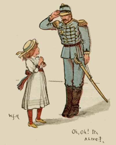 And so the supposed dummy was! A young officer, who, happening like the children themselves to be standing in front of the tailor's staring at the figures, had actually been mistaken by Bessie for one of the waxen group. He had entered into the joke, and remained perfectly motionless while the little girl made her investigation, doubtless explaining all to himself by the fact of her being a jeune mees—one of that extraordinary English nation of whom it is impossible to say what they won't do next.