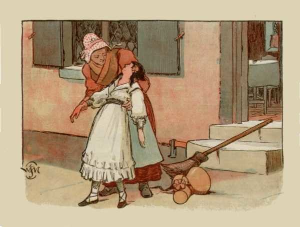 But with the thought of Baby came back my terrors. Was it too late to save him? Certainly there were no rocks or caves to be seen such as Meta had described in her story. But she had said outside the town—perhaps the piper was leading all the children, poor darling Baby among them, away into the country, to shut them up for ever as had been done in Hamelin town. And with the dreadful thought, all my terrors revived, and off I set again, but this time with the more worthy intention of saving Baby. I must go home and tell mamma so that she would send after him. I fancied I was in a street not far from where we lived, and I hurried on. But, alas! when I got to the end it was all quite strange. I found myself among small houses again, and nearly dead with fatigue and exhaustion, I stopped in front of one where an old woman was sweeping the steps of her door.