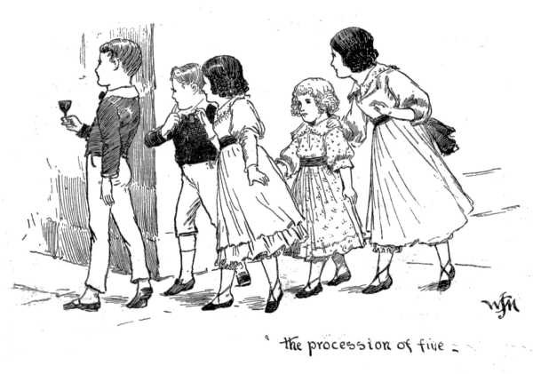 "Oh," said Meta, "they're made of reeds, you know, all in a row like this," and she held up her fingers to her lips, "and you play them by whistling along them, do you see? It sounds something like when you fasten tissue-paper on a comb and blow along it. And they're called 'Pan'-pipes because—oh, I forgot, of course you haven't learnt mythology yet—'Pan' was one of the old pagan gods, a sort of fairy or wood sprite, you know, Addie, and the pictures and figures of him always show him playing on these reed pipes!"
