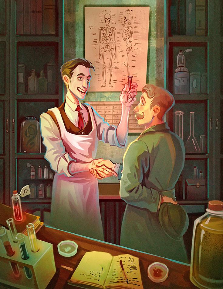 — Я нашел его! Нашел! — крикнул он моему спутнику и кинулся к нам с пробиркой в руке. — Вот реактив, который осаждается только гемоглобином и больше ничем! — Если бы он нашел золотую жилу, его лицо не могло бы ярче светиться счастьем.