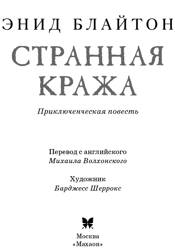 Странная кража : прикл. повесть / Энид Блайтон ; пер. с англ. М. Волхонского ; худож. Барджесс Шеррокс. – М. : Махаон, Азбука-Аттикус, 2019.