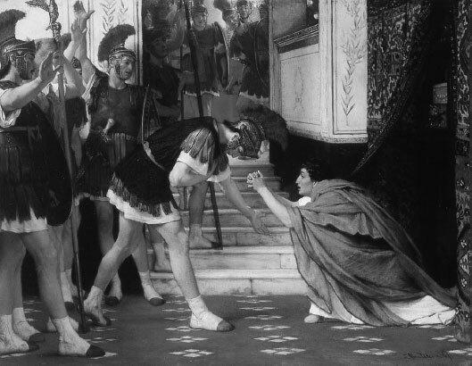 Принципы правления Гая Калигулы значительно отличались от завуалированной автократии двух его предшественников. Он избавился от августианского псевдореспубликанского маскировочного фасада, он желал править как деспот, как владыки эллинского мира. Калигула пытался объявить себя богом при жизни, издал декрет, чтобы все культовые сооружения Иудеи стали святилищами императора. Публию Петронию, губернатору Сирии, отправил распоряжение о сооружении своей статуи в облачении Юпитера и установке ее в Иерусалимском храме[17]. Несмотря на то что это могло привести к национальным волнениям и массовым выступлениям, Петроний начал собирать армию легионеров, дабы, применив силу, исполнить приказ. К счастью, Юлий Агриппа, иудейский друг Калигулы, в конце концов убедил императора отменить указ.
