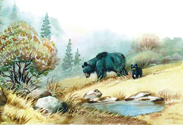 В золотом омуте долины было ещё теплее, чем на гребне холма. Нузак направилась прямо к болотцу. Перед ними, затрещав крыльями, вспорхнула стайка рисовок, и Неева чуть не перекувыркнулся от неожиданности. Однако Нузак не обратила на них внимания. Гагара, увидев бесшумно ступающую медведицу, возмущённо крякнула, а затем испустила пронзительный крик, от которого у Неевы шерсть встала дыбом. Но Нузак не обратила никакого внимания и на гагару.