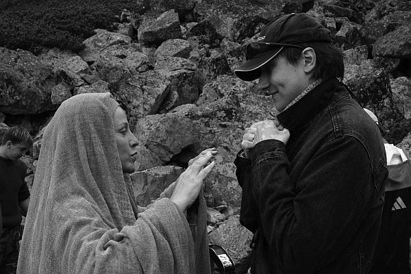 Николай Лебедев и Наталья Варлей (в роли матери Кендарат) на съемках фильма «Волкодав из рода Серых Псов»