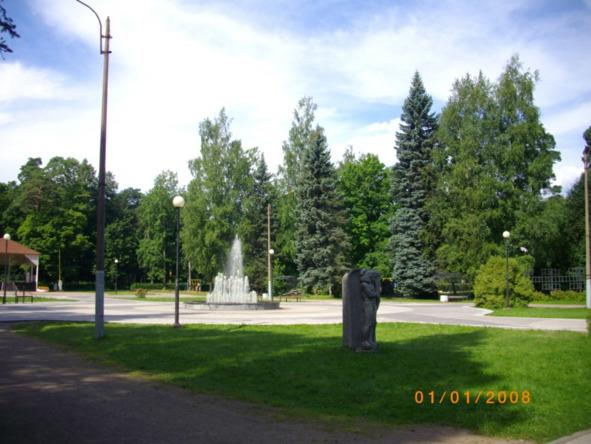 Первой интересной достопримечательностью справа является Центральный фонтан. Почему он так называется на схемах и планах парка, не пойму. Ведь он единственный в парке. Фонтан большой, каскадный, с уютной площадкой вокруг, переходящей в площадь перед Эстрадно-концертным комплексом, который еще строится.